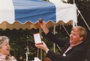 Staffer Debby Sonis shares her enthusiasm during the 30th anniversary reception at the MacFarland-Hubbard House. Sonis worked at the Council for two decades, retiring in 2018.