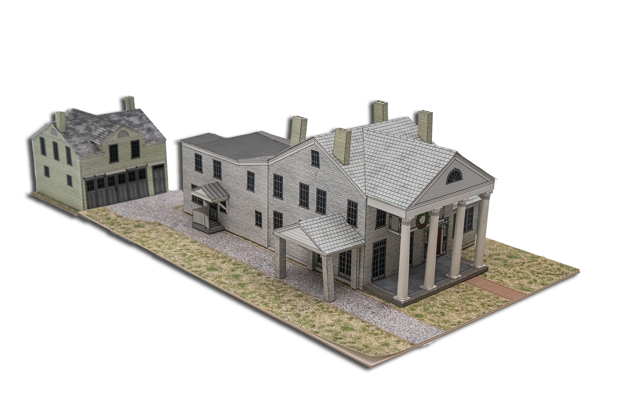 The Carriage House can be seen on the left in this paper model of the MacFarland-Hubbard House, constructed in 2015 from a custom design by Historic Models.