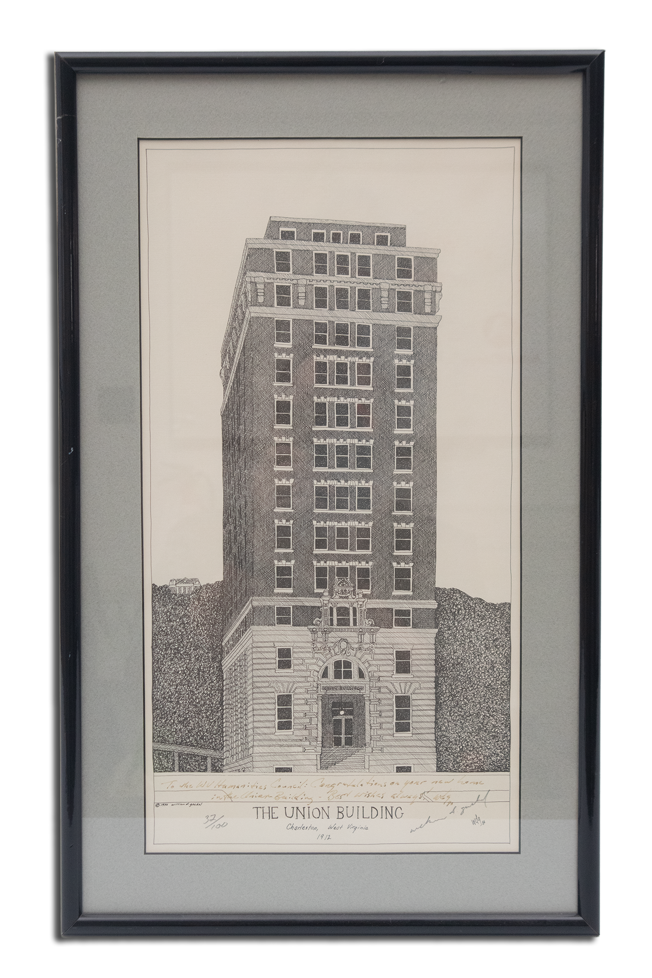 Artist William Goebel presented the Council with a signed copy of his pen-and-ink Union Building piece in 1990 to commemorate our move to the iconic Charleston structure.